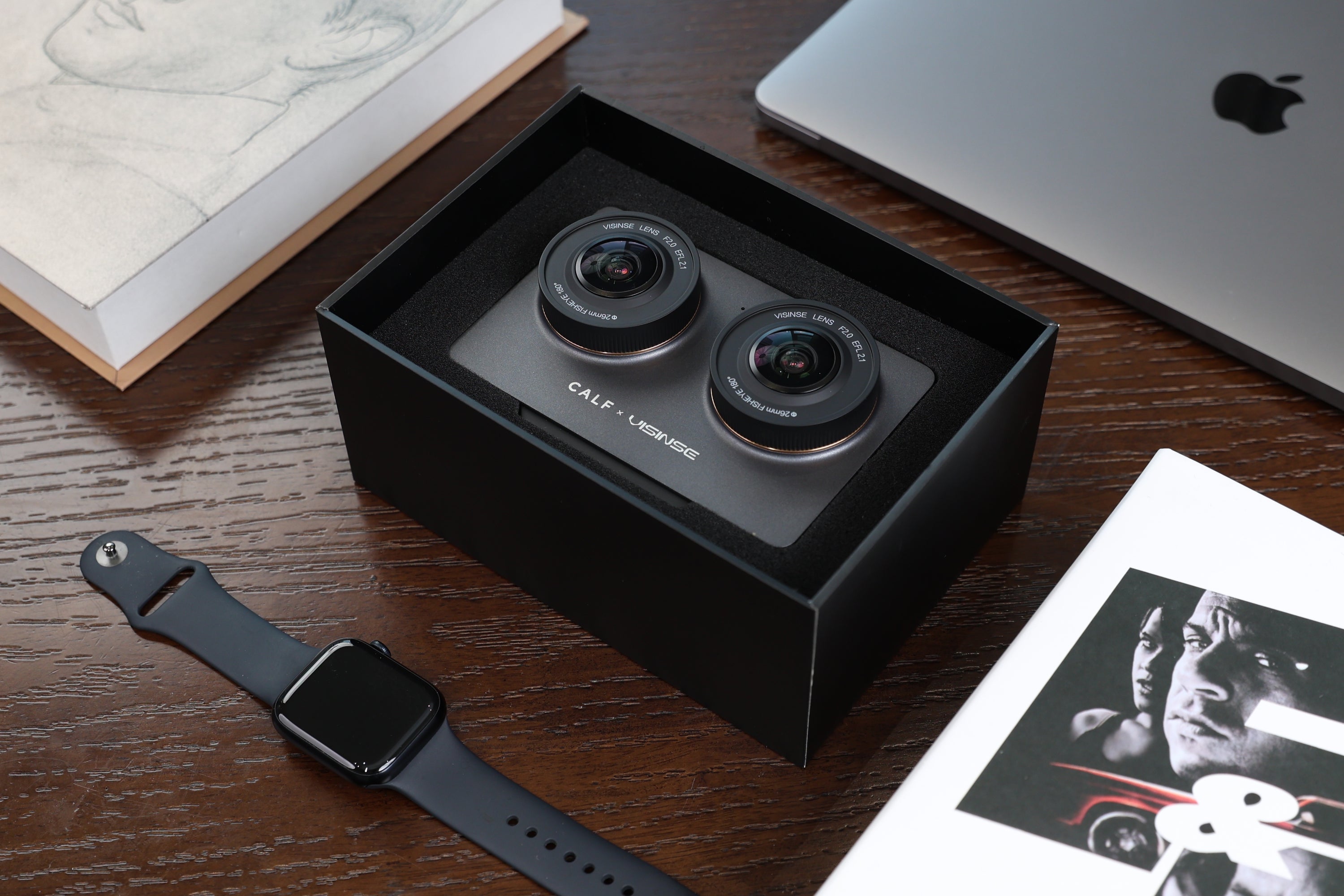 The CALF x VISINSE camera is specially designed for the VR180 frame, with two side-by-side lenses that shoot 8K spatial video, capturing the actual scene as human dual eyes.